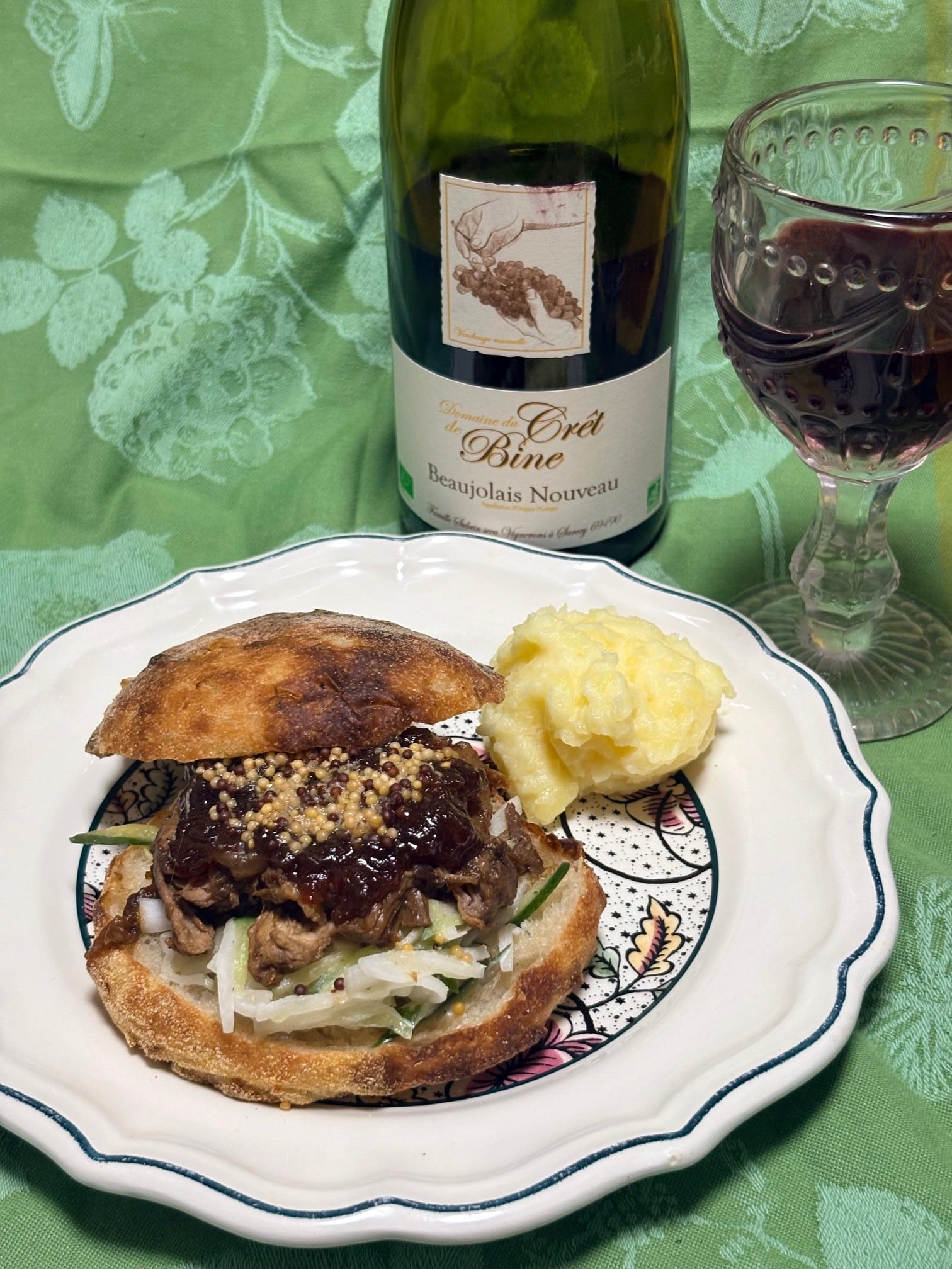 シンプルにソーセージに合わせたり、豚肉のクリーム煮に加えたり、お料理の味が底上げされます。3枚目の写真は、プルドポークと合わせてバーガーにしました。