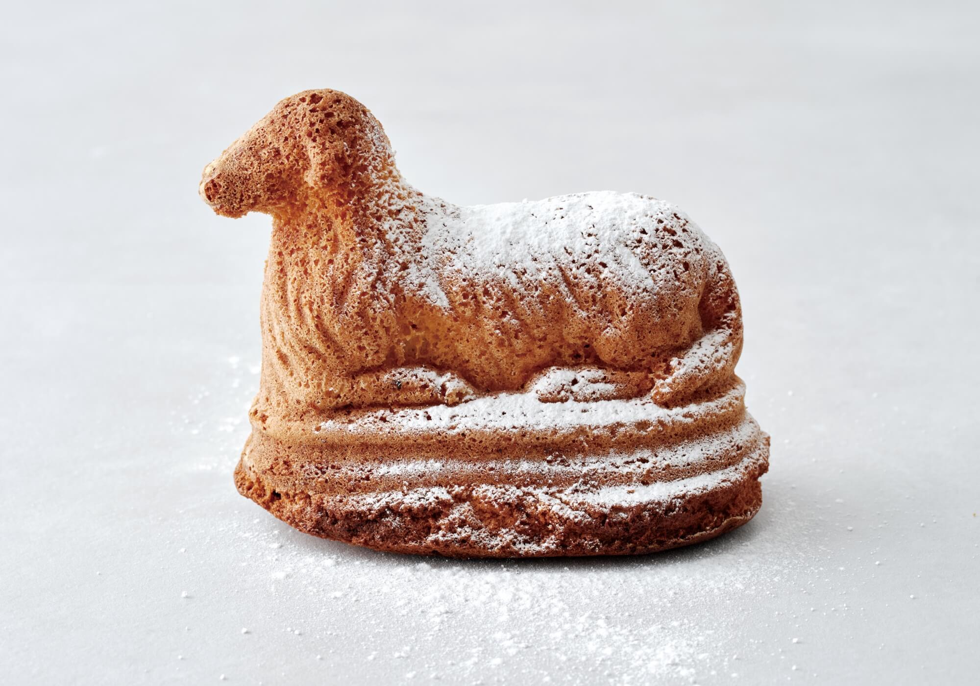 平飼い卵、小麦粉、発酵バター、キビ砂糖、の4種の材料を主に使用し、アルザス地方スフレンハイム村の陶器の型で焼き上げた羊型のお菓子。本来は復活祭の時期に食べるお菓子ですが、皆様に知って頂きたくて店頭では通年販売しています。